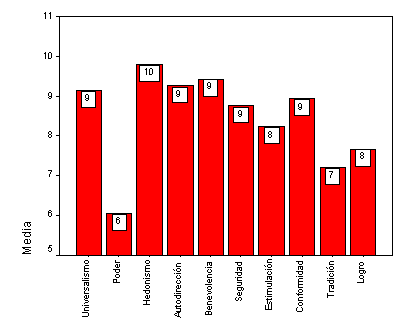 GRÁFICO 2. Puntuaciones medias de los dominios de valor