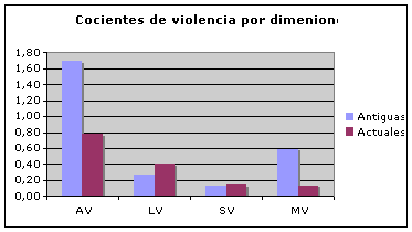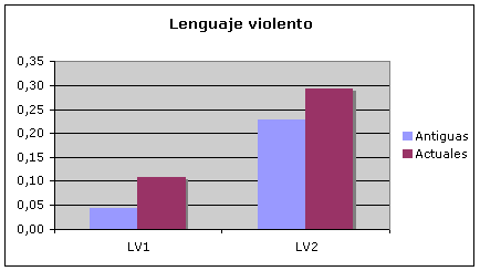 En las series antiguas la frecuencia de escenas violentas es mayor y se muestran más los resultados de la acción violenta. Ante esto, es curioso que el lenguaje violento sea mayor en las series actuales. Los sentimientos se expresan aproximadamente por igual. Cabe mencionar que la duración de los episodios de series antiguas es sensiblemente inferior a la de las series nuevas. De tal forma que, aunque la frecuencia de concurrencia de actos violentos sea mayor en un episodio actual, la considerable menor duración de las series antiguas arrojará normalmente un cociente superior.