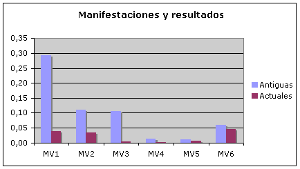 En las series actuales la manifestación de los resultados de la violencia apenas es apreciable. Mientras que en las antiguas, como se puede apreciar en la gráfica, destacan los efectos visuales y las deformaciones del cuerpo. Un buen ejemplo podemos encontrarlo en Bugs Bunny, que colocará un explosivo en la boca de un conejo competidor, resultando de ello una cara chamuscada, humeante, sin dientes y con un rosario de estrellas orbitando alrededor de la cabeza de la víctima. Aunque en un grado mucho menor, si comparamos con las series antiguas, en las actuales, tienen alguna presencia la verbalización y los efectos visuales, sobre el resto de manifestaciones. No quisiéramos finalizar, sin exponer algunas reflexiones y consideraciones generales que permiten caracterizar cada uno de los grupos de series analizadas. En las series antiguas: