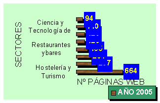 Sectores más representativos en la Red durante el año 2005 y el número de páginas web recuperadas. Las páginas web recuperadas y clasificadas se han divido en sectores y vemos en la gráfica 1 los ocho más representativos por la cantidad, de manera que en esta comunidad es «Hosteleria y turismo», el sector que mas web sites comerciales presenta, seguido de «Dietética. Principios nutricionales aplicados a las bebidas y a los alimentos», o sea el sector de la alimentación. Sectores más representativos con venta directa en la Red durante el año 2005 y el número de páginas web recuperadas. Pero como se muestra en la gráfica 2, si bien hostelería y turismo y el sector de la Alimentación siguen siendo los dos primeros, en el resto de los sectores se observan notables diferencias tanto cualitativas (desaparecen algunos sectores y aparecen otros nuevos en relación con la gráfica 1) como cuantitativas (la cantidad de páginas web en aquellos sectores que aparecen en ambas gráficas es notoriamente diferente). A primera vista se observa esta inferioridad en Hostelería y turismo, siendo el número de páginas web con venta directa menor de un tercio con respecto al del número de empresas presentes; y en el caso del siguiente sector, Alimentación, además de inferior resulta sorprendente, pues la comunidad autónoma de Extremadura es de las pocas que presentan páginas web de venta directa en este sector. Para el resto, el número hallado es muy poco significativo: eso se ve claramente en el sector de materiales de construcción con apenas 7 páginas frente a las 201 empresas que se encuentran en la Red. A la vista de estos datos podemos afirmar que la situación del comercio electrónico en España, o más concretamente en la comunidad autónoma de Extremadura, es todavía de asentamiento; por tanto, cuando nos planteamos la posibilidad del comercio por televisión creemos que lo mas probable es que el empresario extremeño se adapte a la posibilidad de anunciarse en televisión siendo reticentes al comercio por televisión. 3. Conclusiones - El Commerce es un sector del comercio en vías de desarrollo tanto a nivel internacional como sobre todo a nivel nacional. - Creemos que el telespectador aceptará con éxito este tipo de comercio siempre y cuando el proceso de compra sea fundamentalmente fácil. - La emigración tanto del usuario como del empresario del comercio electrónico presenta muchas posibilidades de éxito. - Los empresarios aceptan este tipo de comercio debido a las numerosas ventajas que les aporta, tales como mayor información sobre sus usuarios. - Los usuarios del comercio electrónico encuentran más ventajas, tales como la confianza u otras posibilidades de pago. - El establecimiento del tCommerce se hará en dos fases al igual que el eCommerce: conocimiento del medio y publicidad, para pasar posteriormente a la venta en sí. |