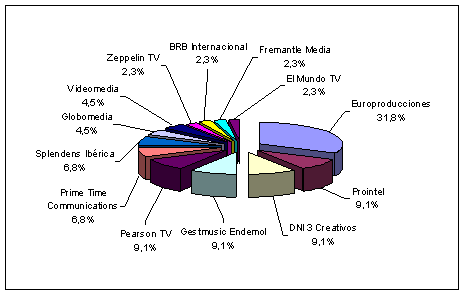 Fuente: Elaboración propia con datos de GECA B) ANTENA 3 Tabla 10: Productoras que han producido concursos para Antena 3 (96-04)