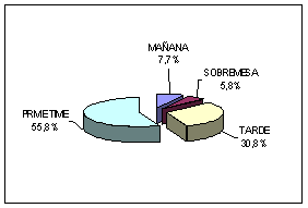Fuente: Elaboración propia con datos de GECA 3. El concurso en las parrillas televisivas Para analizar qué estrategias emplean las tres cadenas en la programación de los concursos de producción independiente, atenderemos a la tabla 4 y al siguiente gráfico 2: Tabla 4: Programación del concurso por cadenas y franjas (96-04)