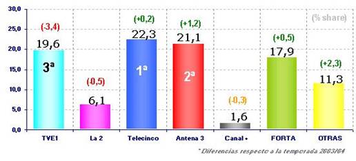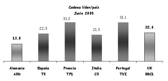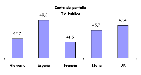 Ante el futuro más próximo del sector, es necesario tener una radiografía de una parte importante del mercado de la televisión europea (Alemania, España, Francia, Italia, Portugal y Reino Unido), con la que poder trabajar en el estudio de los gustos del público, que es lo que la audiencia “ve” en su pantalla. En estos momentos, se vive el debate de cual debe ser el papel de la televisión pública en cuanto a su financiación, la participación de las Administraciones públicas en su gestión y como van a ser el motor de desarrollo del proceso de digitalización. En este artículo se quiere dar una mayor relevancia al sector público de la televisión, dado el momento de encrucijada que viven algunos operadores, como el caso de RTVE en España. En el 2005 las principales cadenas nacionales europeas de titularidad pública (ARD, ZDF, RTVE, France Télévision, RAI, BBC y la UER-Unión Europea de Radiodifusores) han firmado una declaración común en la que se resalta su papel vital y garante para la democracia, la cohesión social, la diversidad cultural, el pluralismo y la información independiente, la renovación creativa, el mejor conocimiento de la realidad social, la inversión en contenidos originales locales y la construcción de un espacio de comunicación abierto a todos. Este análisis se vertebra en torno a tres conceptos: El sector público dentro del panorama televisivo de cada país; la cuota de pantalla del mercado; y ranking de los programas más vistos en el mes de junio de 2005 (géneros, formatos y cadenas predominantes). 1. Europa El continente europeo presenta un panorama televisivo diferente al resto del mundo. La televisión pública es uno de los principales actores, mientras que en otros países, como Estados Unidos, los operadores públicos tienen una presencia minoritaria, en Europa, en muchos países llega a ser líder de audiencia, y casi siempre supera una cuota conjunta superior al 30% (España: 43,6%, la suma de TVE1, La2 y FORTA durante la temporada 04/05).(Ver Gráfico 1). La financiación, en estos momentos, es el tema de mayor controversia respecto al servicio público de televisión. En los principales países europeos los ingresos provienen de dos vías: la financiación pública (pago de canon o subvenciones estatales) y la inversión publicitaria. En todos los países, excepto en España, la participación en la denominada tarta publicitaria está limitada a los operadores públicos por parte de los Organismos reguladores del audiovisual. Otra de las características del sector europeo es la concentración de las cuotas de mercado en pocos operadores, y como la cadena líder lo es con un porcentaje aproximadamente del 25%. Alemania, es la gran excepción, ya que el liderazgo está mucho más repartido, dada la multiplicidad de canales existentes, la primera posición se sitúa en el 15% de cuota de pantalla. Así mismo, es interesante observar como las cadenas públicas luchan por su supremacía, aunque en el mes analizado sólo en dos países consiguen liderar su mercado (Alemania-ARD y Reino Unido-BBC1) (Ver gráficos 1 y 2). 2. Alemania 2 canales públicos nacionales en abierto: ARD y ZDF Financiación: Canon + publicidad Horario Prime time: 20:00-23:00h (3 horas) Características del mercado: Fragmentación de las audiencias, debido a un elevado número de canales y a la penetración del cable. Aún así, la cuota de pantalla está dominada por cuatro operadores, los dos públicos y dos privados, RTL y Sat.1.(V Gráfico 4). Fuente: Ip-Deutschland Televisión pública: Programación generalista Limitaciones de publicidad: No en prime time (a partir de las 20h); no domingos ni festivos; no más de 20 minutos por hora. Líder del mercado Junio 2005: Suma más de la cuarta parte del mercado (27,5%) De las 50 emisiones más vistas del mes (Ver tablas 1 y 2). Las cadenas públicas dominan el mes de junio, gracias a los informativos y el deporte (fútbol). El género dominante es la ficción nacional, donde destaca el título de Tatort (ARD), serie semanal policial con más de 600 episodios en emisión. Cine y Reality son los grandes géneros que no tienen emisiones entre las más vistas. 3. España 2 canales públicos nacionales en abierto: TVE-1 y La2 12 canales públicos regionales en abierto: CanalSur y Canal 2 Andalucía; TV3 y C33; ETB-1 y ETB-2; TVG; TVM; C9 y Punt 2; TV Canarias; CMT Financiación: Subvención + publicidad Horario Prime time: 21:00-24:00h (3 horas) Características del mercado: El mercado tanto de audiencias como de publicidad se reparte entre cuatro operadores, TVE-1, T5, A3 y el conjunto de canales autonómicos, FORTA. Aumento de la cuota de pantalla de las cadenas locales y temáticas (ver gráfico 5). Fuente: GECA Consultores Televisión pública: Programación generalista Limitaciones de publicidad: al igual que las cadenas privadas, 15% del tiempo total y 20% por hora de emisión es el máximo de tiempo dedicado a la publicidad Pérdida del liderazgo en el año 2004 Temporada 04/05: TVE-1, La2 y Forta suman el 43,6% de la cuota de mercado.De las cadenas autonómicas, la andaluza Canal Sur es la única que consigue ser líder en su territorio (Ver gráfico 6). Fuente: GECA Consultores Las 25 emisiones más vistas de la temporada en el ámbito nacional (Ver gráfico 7). Fuente: GECA Consultores Durante esta temporada en España el panorama ha estado dominado por las emisiones deportivas (partidos de fútbol emitidos por cadenas públicas) y por el género de ficción nacional, series de producción propia. Es de resaltar, la ausencia de informativos y de cine. Los 15 programas más vistos de la temporada en el ámbito nacional (Ver gráfico 8). Fuente: GECA ConsultoresTVE-1 tiene 4 programas entre los más vistos, dos series y dos programas de entretenimiento, musical y humor, respectivamente. En el ranking de programas si aparecen títulos de series de producción ajena, como es la saga de CSI Las Vegas y CSI Mi